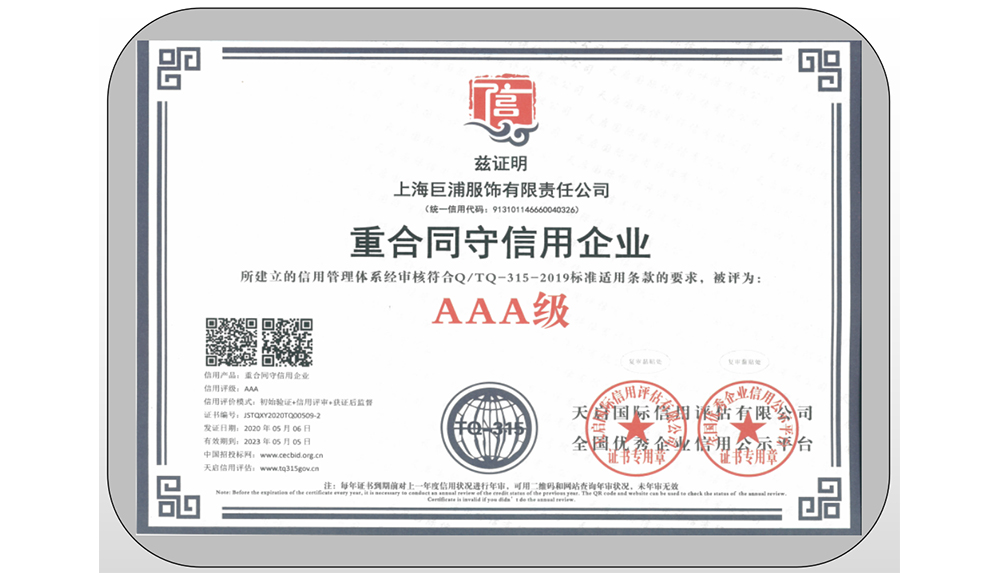 巨浦公司創(chuàng)建于2007年,經(jīng)過努力發(fā)展從一期工廠立足于中國國際之都上海, 上海市嘉定區(qū)曹安公路3299號2007年建成投產(chǎn),到現(xiàn)公司業(yè)務(wù)已遍布國內(nèi)外市場,生產(chǎn)設(shè)備和設(shè)計能力等都已與國際接軌,打開目前形成了服裝外貿(mào)與國內(nèi)品牌全面發(fā)展的格局,公司有日本和韓國歐洲優(yōu)秀專家及工程設(shè)計人員與生產(chǎn)為一體。二期工廠建立于中國山東省棗莊市東盛工業(yè)區(qū)6號,第一階段已于2010年3月竣工投產(chǎn),現(xiàn)年產(chǎn)能達260多萬套,待第二階段和第三階段全部建成投產(chǎn)后,年總產(chǎn)能將達500多萬套,我們相信同過努力上海巨浦服飾有限責(zé)任公司,山東巨浦服飾有限公司,棗莊市依行天下服飾有限公司共同組成,會成為棗莊一顆璀璨奪目的工業(yè)明珠。